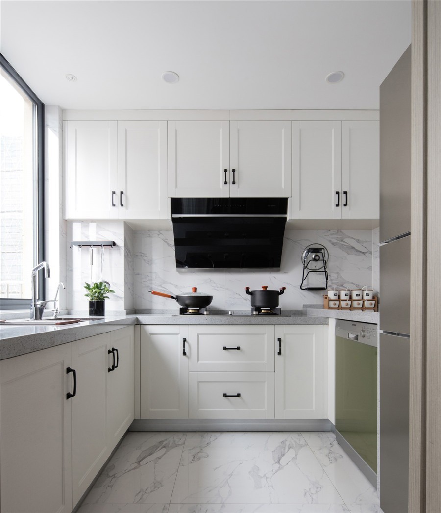 廚房的門(mén)做了弱化設(shè)計(jì) 一推進(jìn)去即是 視野開(kāi)闊的開(kāi)放式廚房