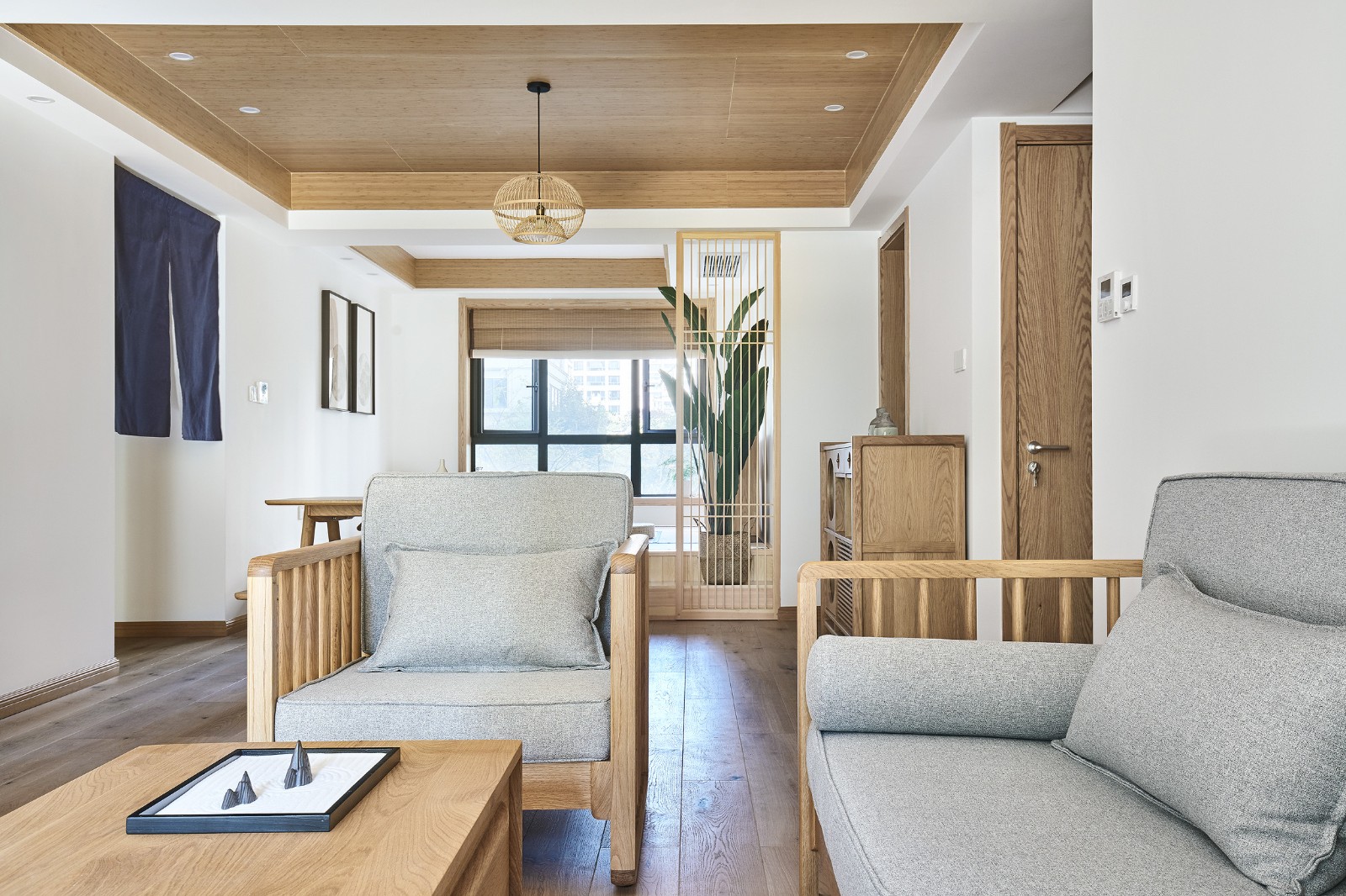 吊頂很好地平衡了顏色比例,仿佛很平靜。沒有過多的裝飾,節(jié)制卻精致。