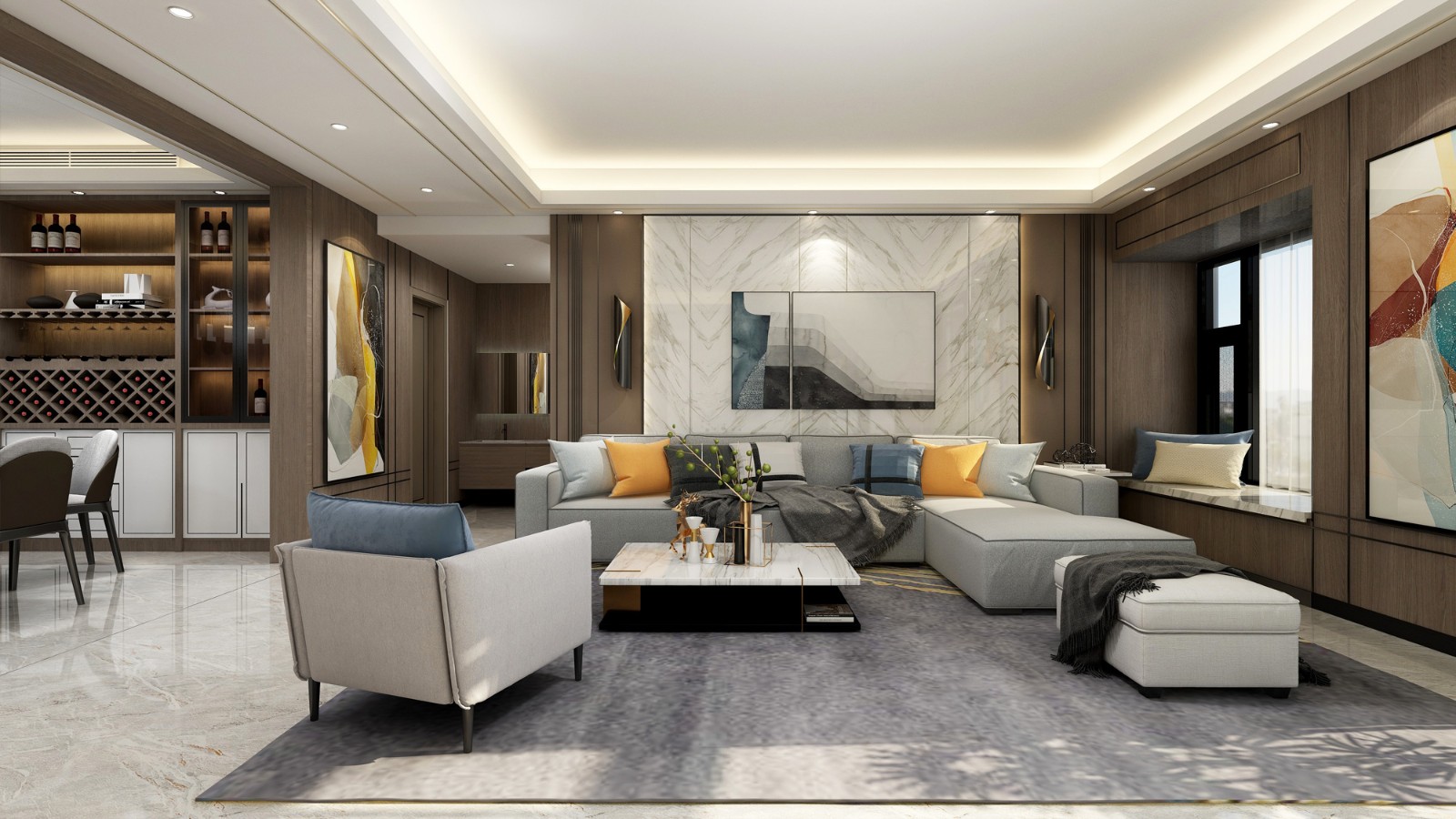 不管是沙發(fā)還是天花上的金屬條裝飾,都有非常硬朗的線條,讓整個空間都顯得十分立體。