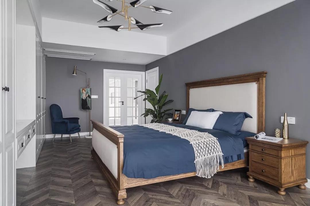 電視墻的設(shè)計(jì)也很有特色,在偏左的地方掛上一塊黑白相隔的毯子,在深灰色的電視墻上做了一個(gè)視覺(jué)沖擊的一個(gè)設(shè)計(jì),讓電視墻看起來(lái)不單調(diào),有個(gè)性。